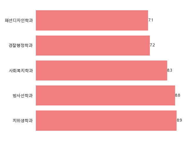 10위: 패션디자인학과 (7.1:1)치위생학과, 방사선학과 등 보건 계열 학과와 사회복지학과, 경찰행정학과 등 사회과학 계열 학과의 강세가 돋보입니다. 패션디자인학과는 예술 분야에서 높은 경쟁률을 보이고 있습니다.