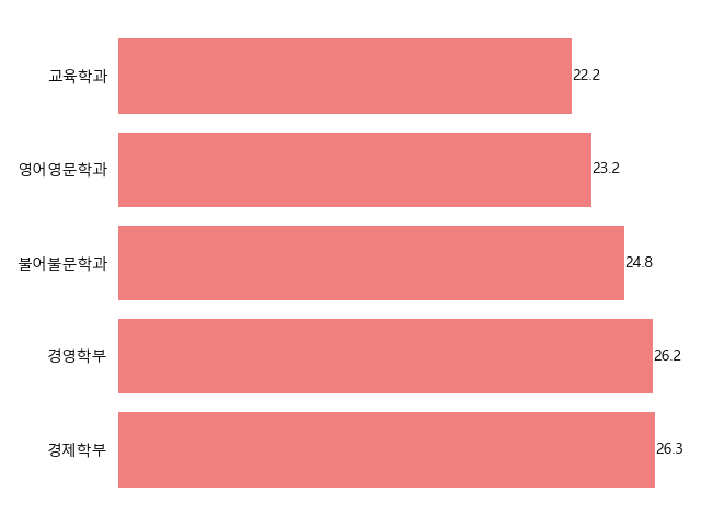 상위 10위권 학과들을 살펴보면, 경제학부와 경영학부가 각각 26.3:1, 26.2:1의 경쟁률을 기록하며 높은 인기를 증명했습니다. 불어불문학과(24.8:1), 영어영문학과(23.2:1), 교육학과(22.2:1)도 높은 경쟁률을 보이며, 인문, 사회 계열 학과들의 강세를 확인할 수 있습니다.