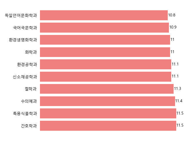29위: 국어국문학과 (10.9:1)
