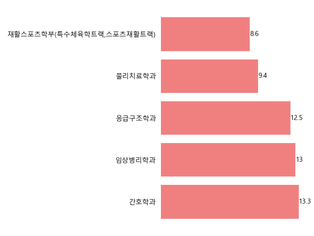 2025학년도 나사렛대학교에서 가장 높은 경쟁률을 기록한 학과들입니다. 간호학과는 13.3:1의 압도적인 경쟁률을 보이며, 수험생들의 높은 관심을 실감케 했습니다. 임상병리학과 13:1, 응급구조학과 12.5:1로 그 뒤를 이었습니다. 물리치료학과는 9.4:1, 재활스포츠학부(특수체육학트랙,스포츠재활트랙)는 8.6:1의 경쟁률을 기록했습니다.