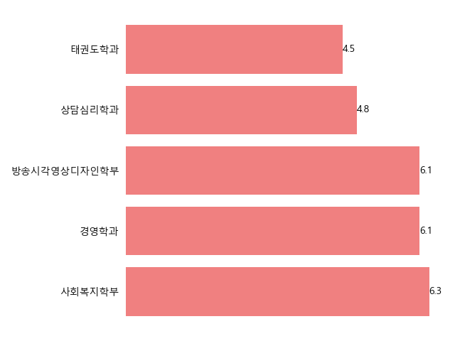 상위 10위권에는 사회복지학부(6.3:1), 경영학과(6.1:1), 방송시각영상디자인학부(6.1:1)가 자리 잡았습니다. 상담심리학과는 4.8:1, 태권도학과 4.5:1의 경쟁률을 보였습니다. 인문, 사회, 예체능 계열의 학과들이 고르게 분포되어 있어, 다양한 분야에 대한 학생들의 관심을 엿볼 수 있습니다.
