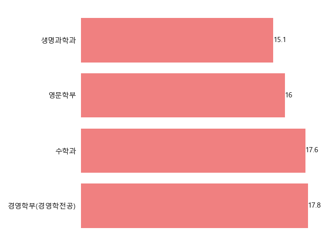 - 수학과: 17.6 : 수학적 사고력을 바탕으로 다양한 분야에서 활약할 수 있는 인재를 양성합니다.